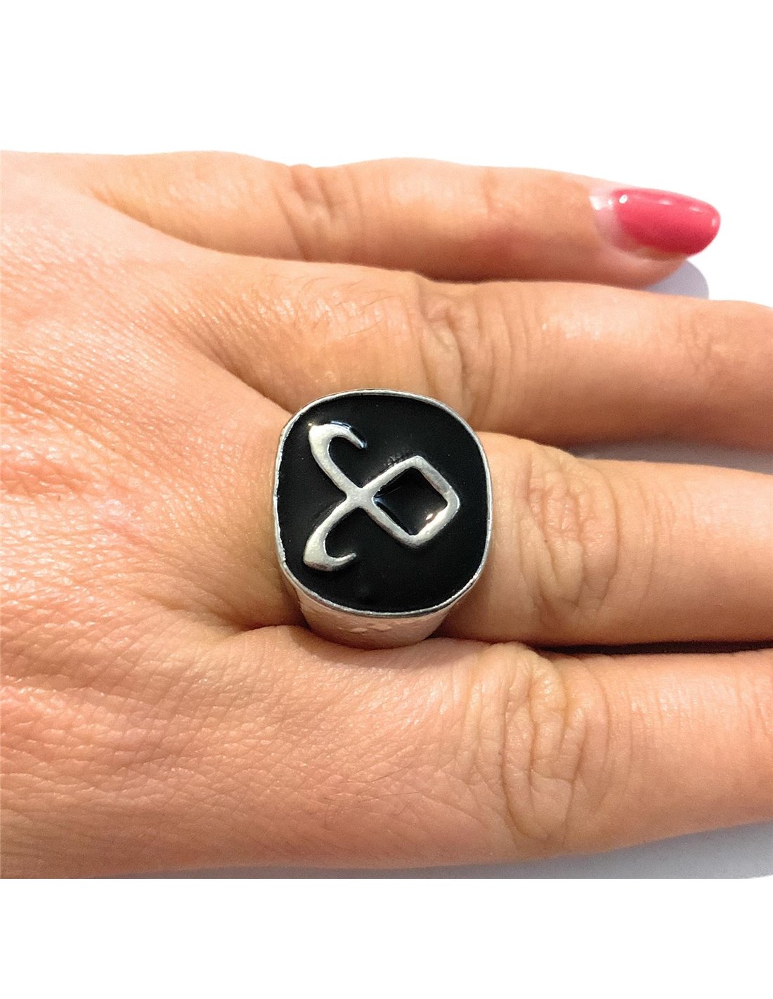 - Materiale: Lega di zinco anallergica Nichel free tono argento Misure dell'anello disponibili: dalla 7 alla 10.