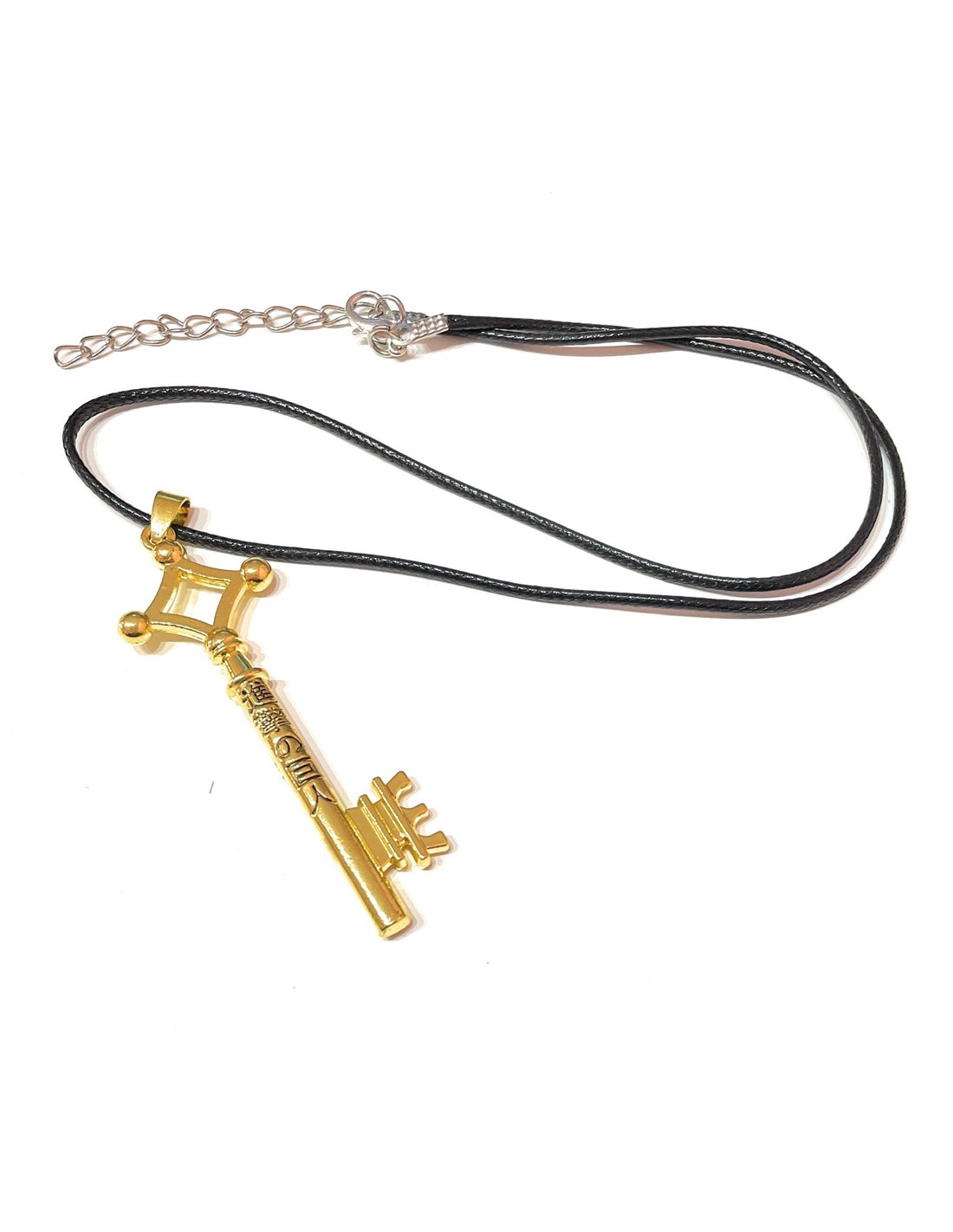 • Misura della chiave: 6,5 cm x 2,5 cm. Misura della collana: 45 cm, laccio nero chiusura a moschettone.