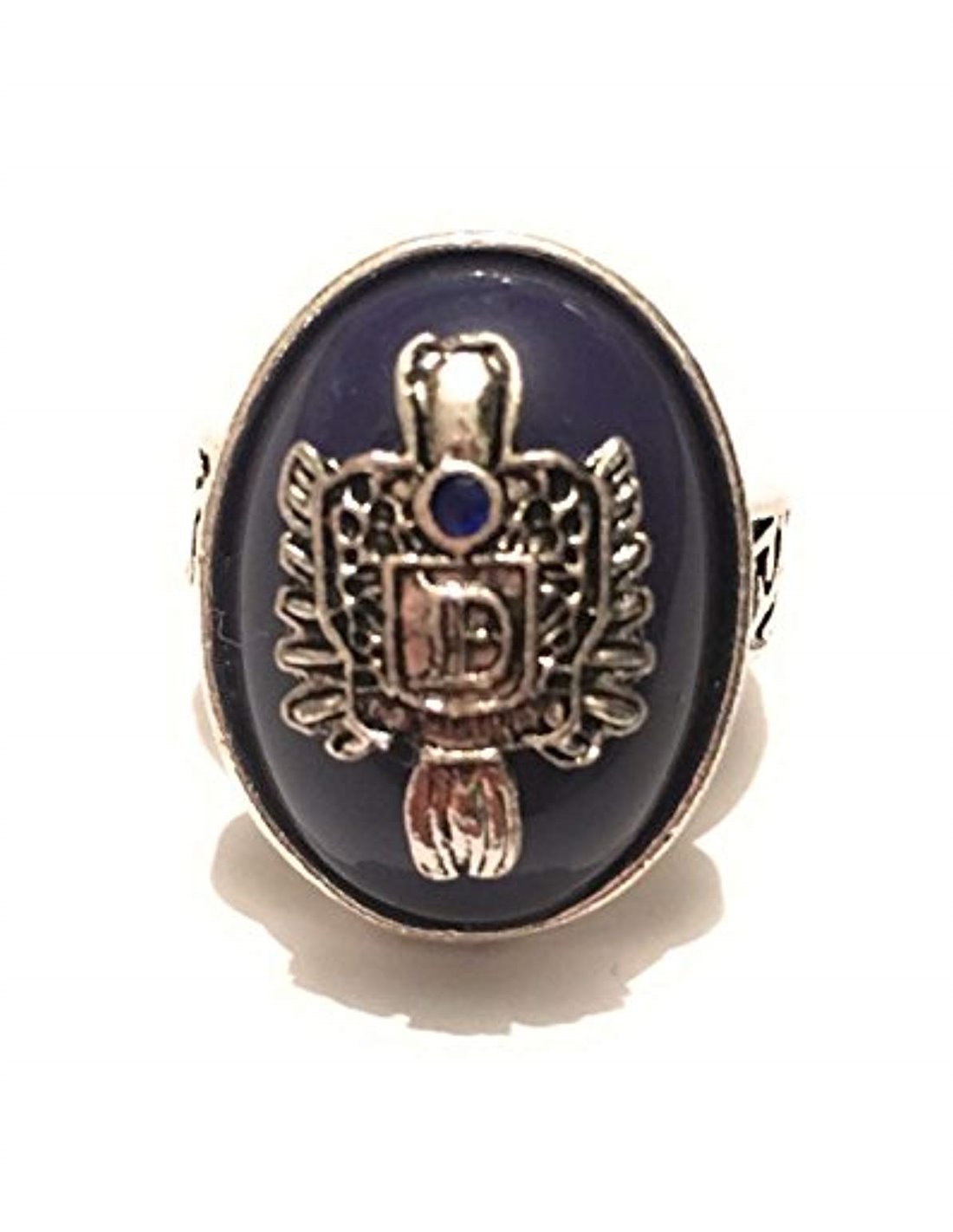 Anello solare Damon  con pietra blu e stemma rifinito.