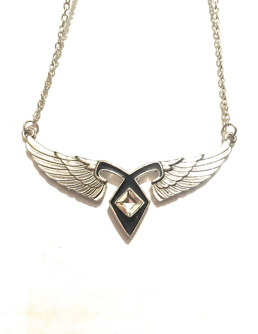 • Collana con simbolo del Potere della Runa Angelica con Ali e strass centrale