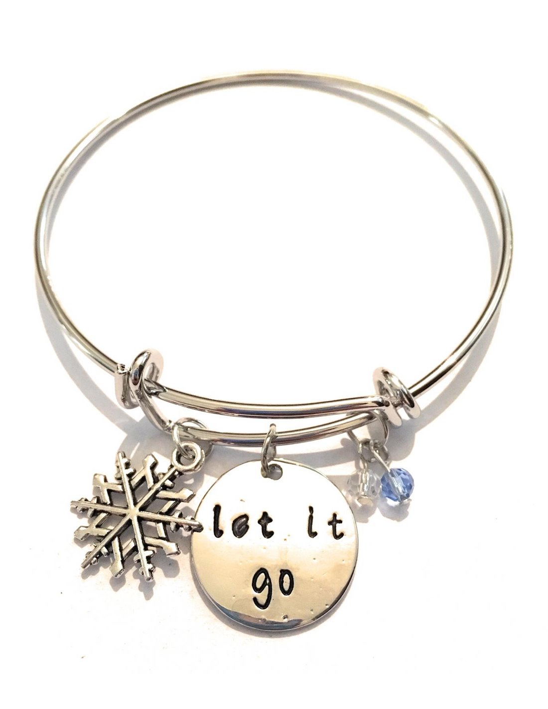 Bracciale Bangle Metallo Nichel piastrina Incisioni Let It Go Cristallo di Neve