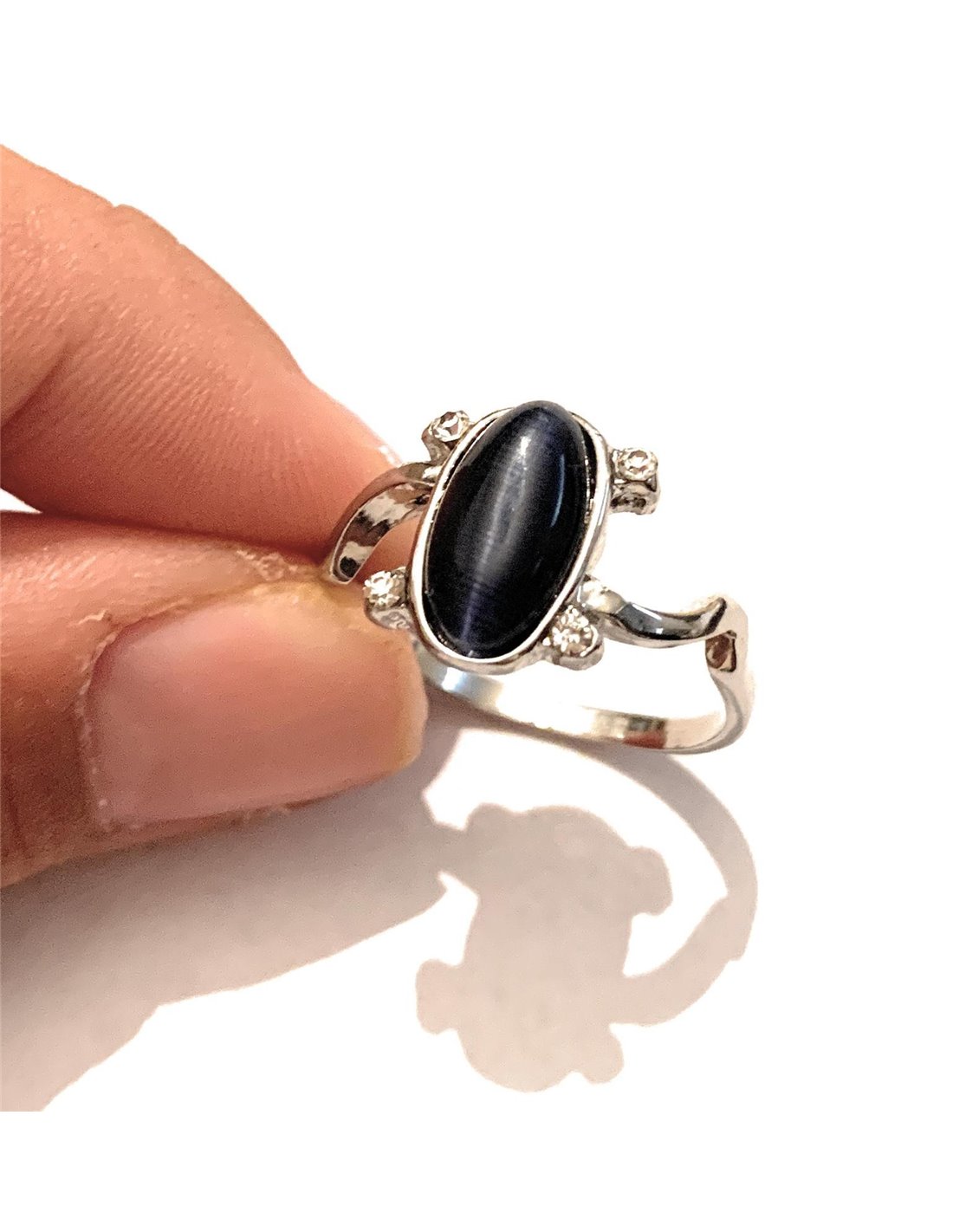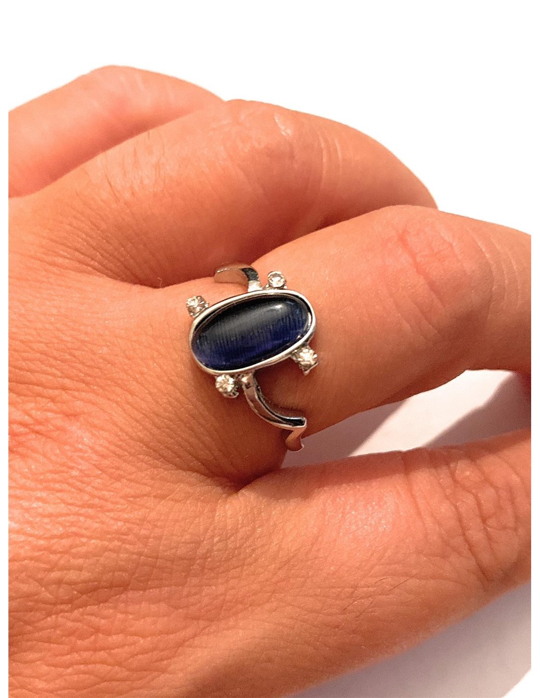 - Anello in metallo Nichel Free, totalmente anallergico, con simil pietra di lapis. Si consiglia di evitare il contatto con acqua per preservarne la placcatura.