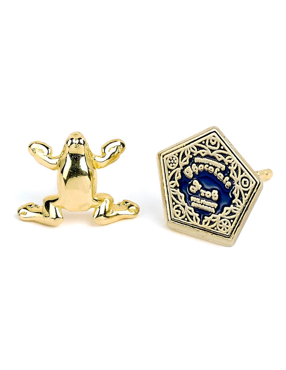 Questi orecchini in lega di zinco placcati in oro sono basati sulla scena della rana di cioccolato di Harry Potter quando Harry ha avuto il suo primo dolcetto di rana in assoluto sul treno ed è saltato direttamente fuori dalla scatola della rana di cioccolato sul finestrino. Questi orecchini a bottone sono il regalo perfetto e vengono presentati su una confezione ufficiale con marchio Harry Potter. Ogni perno misura circa 10 mm per 10 mm.