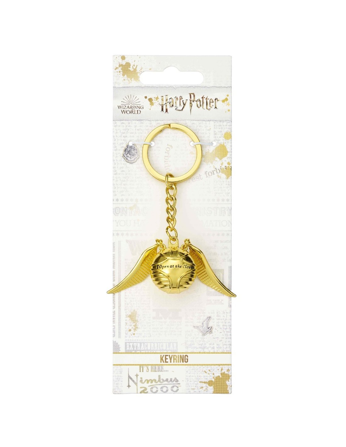 Il Boccino d'oro è la terza e più piccola pallina ad essere utilizzata in una partita di Quidditch. Questo portachiavi 3D ha ali mobili e porta l'incisione "I open at the close". Basta guardarlo volare via con le tue chiavi! Realizzato in lega di zinco anallergica Nichel Free dorata, viene fornito della sua confezione originale Harry Potter!