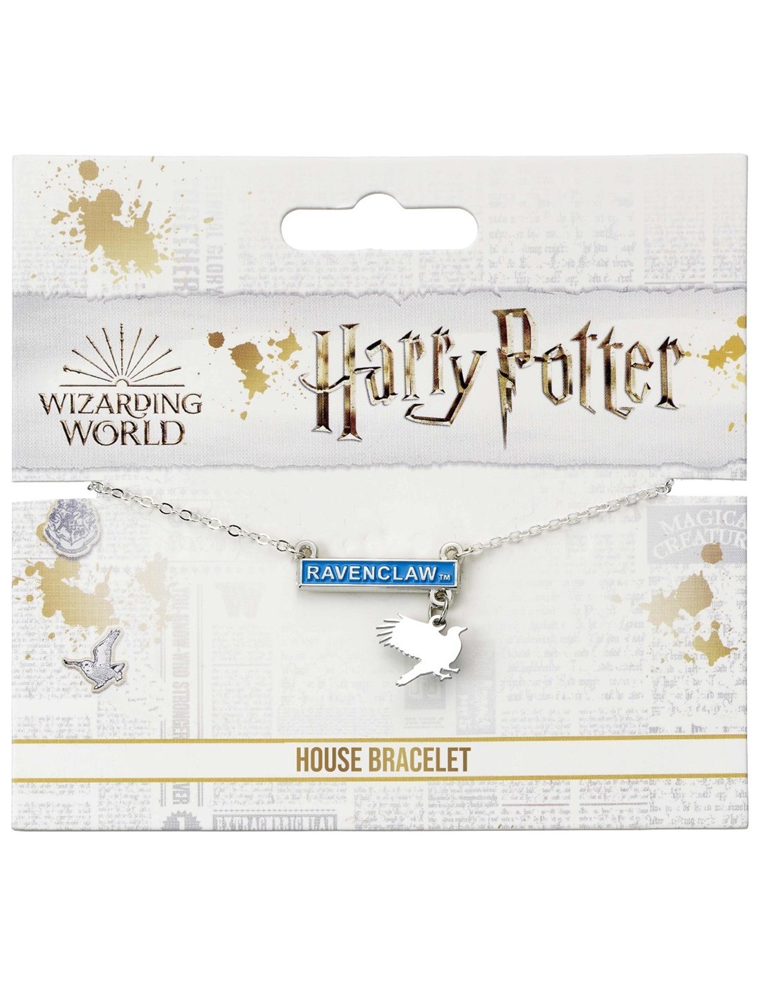 Questo braccialetto presenta una barra con il nome della casa rifinita in smalto su una catena delicata ed è rifinito con un piccolo ciondolo a forma di aquila. Se sei un membro della Ravenclaw House, sarai uno studente che possiede le caratteristiche che sono più apprezzate lì, come intelligenza, conoscenza, curiosità, creatività e arguzia! Catena di estensione regolabile. Realizzato in lega di zinco con dettagli smaltati. Fornito su confezione ufficiale con marchio Harry Potter.