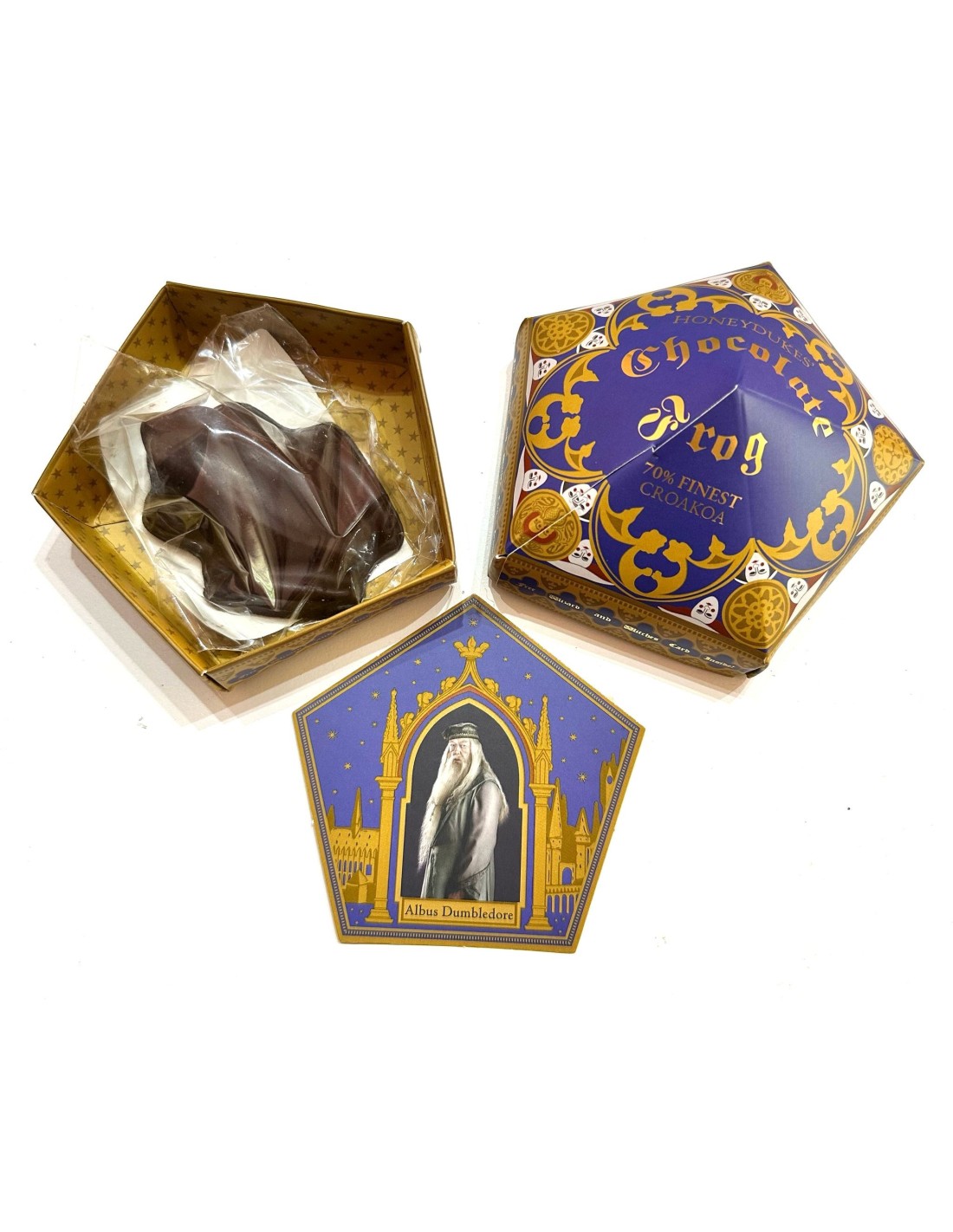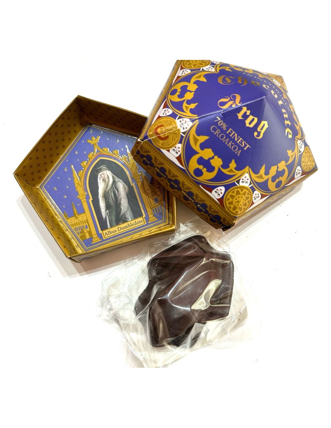 65 g Chocolate Frog e la carta sono in una scatola di cartone pentagonale. Potrebbe contenere tracce di noci. Conservare in un luogo fresco e asciutto. Non refrigerare.